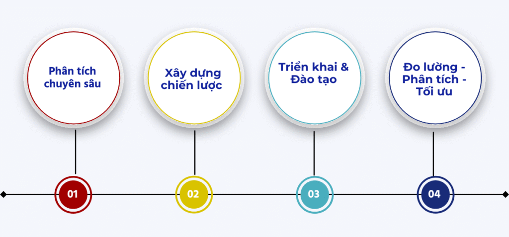 • Đồng hành với doanh nghiệp từ chiến lược → triển khai → đào tạo đội ngũ → tối ưu dài hạn.